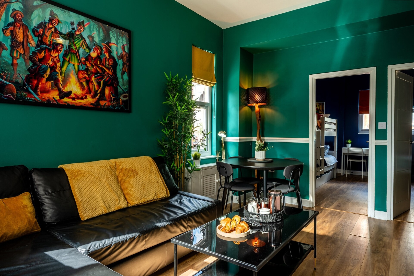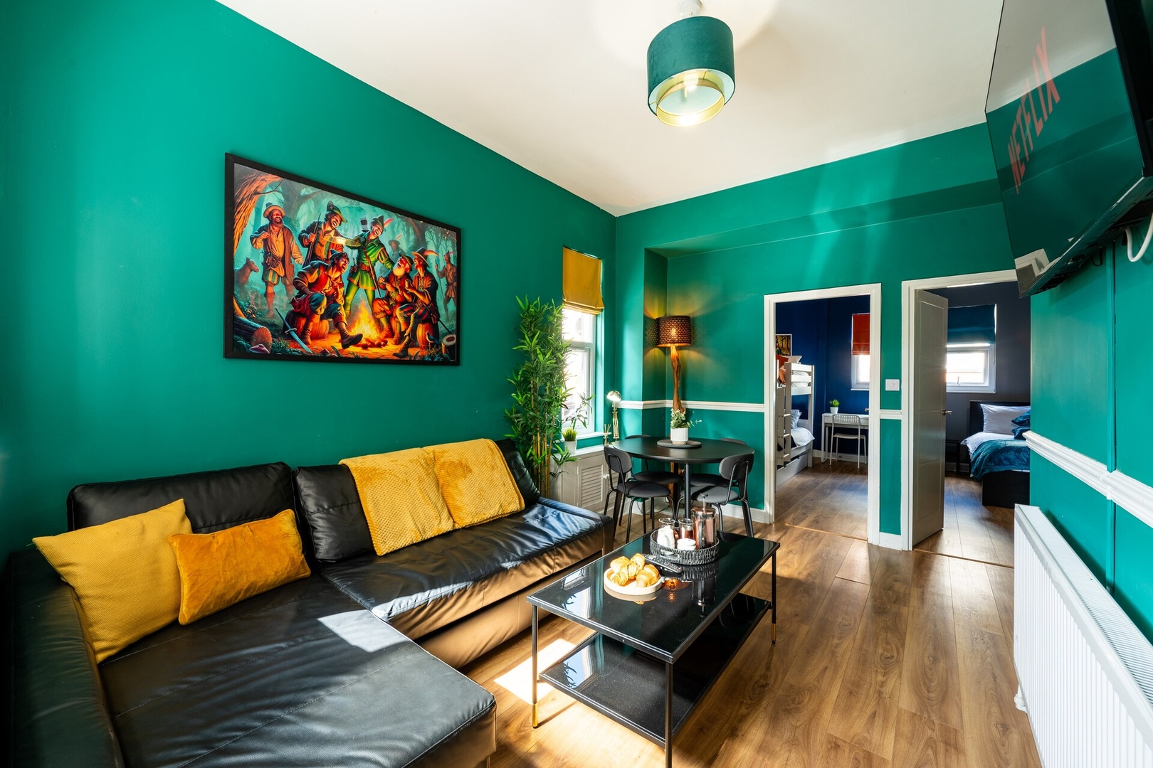 A stylish and comfortable 2-bedroom apartment ideal for families, small groups, and business travellers. It features flexible sleeping with a double bed, bunk beds, and a sofa bed, a fully equipped kitchen with dining space, a cosy TV area, and a full modern bathroom—perfect for short or longer stays.